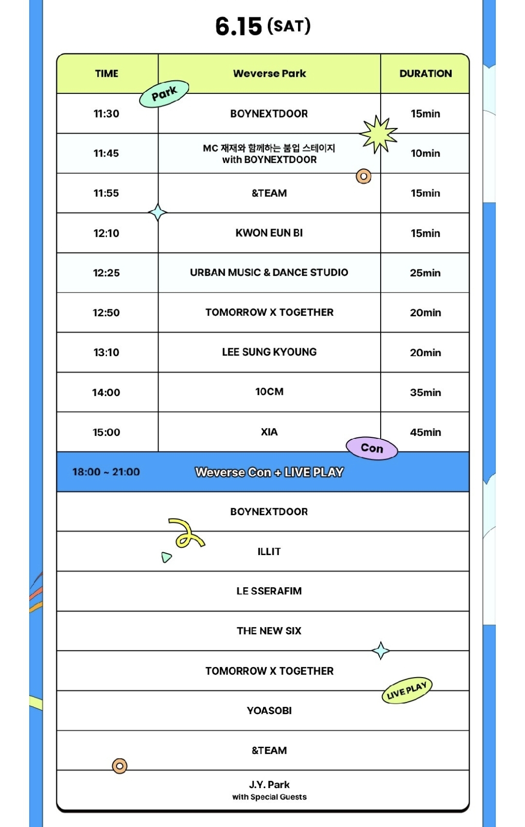 처음 라인업에 있었던 뉴진스(New Jeans)는 저 사태 이후에 빠지게 되었고 최종 라인업에서 플레이브(Plave)가 들어왔다. 플레이브(Plave)라니 와우!! ~~ 나쁘지 않아^^;;