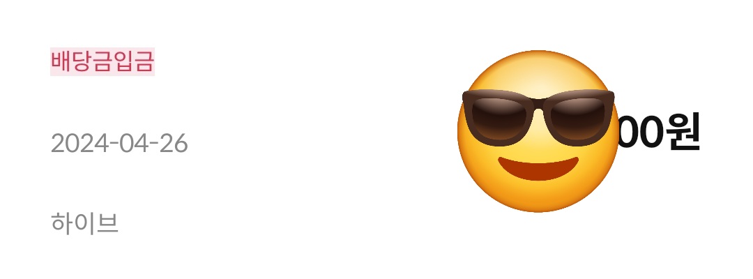 그 와중에 하이브배당금은 입금됨(4/26, 주당 700원)